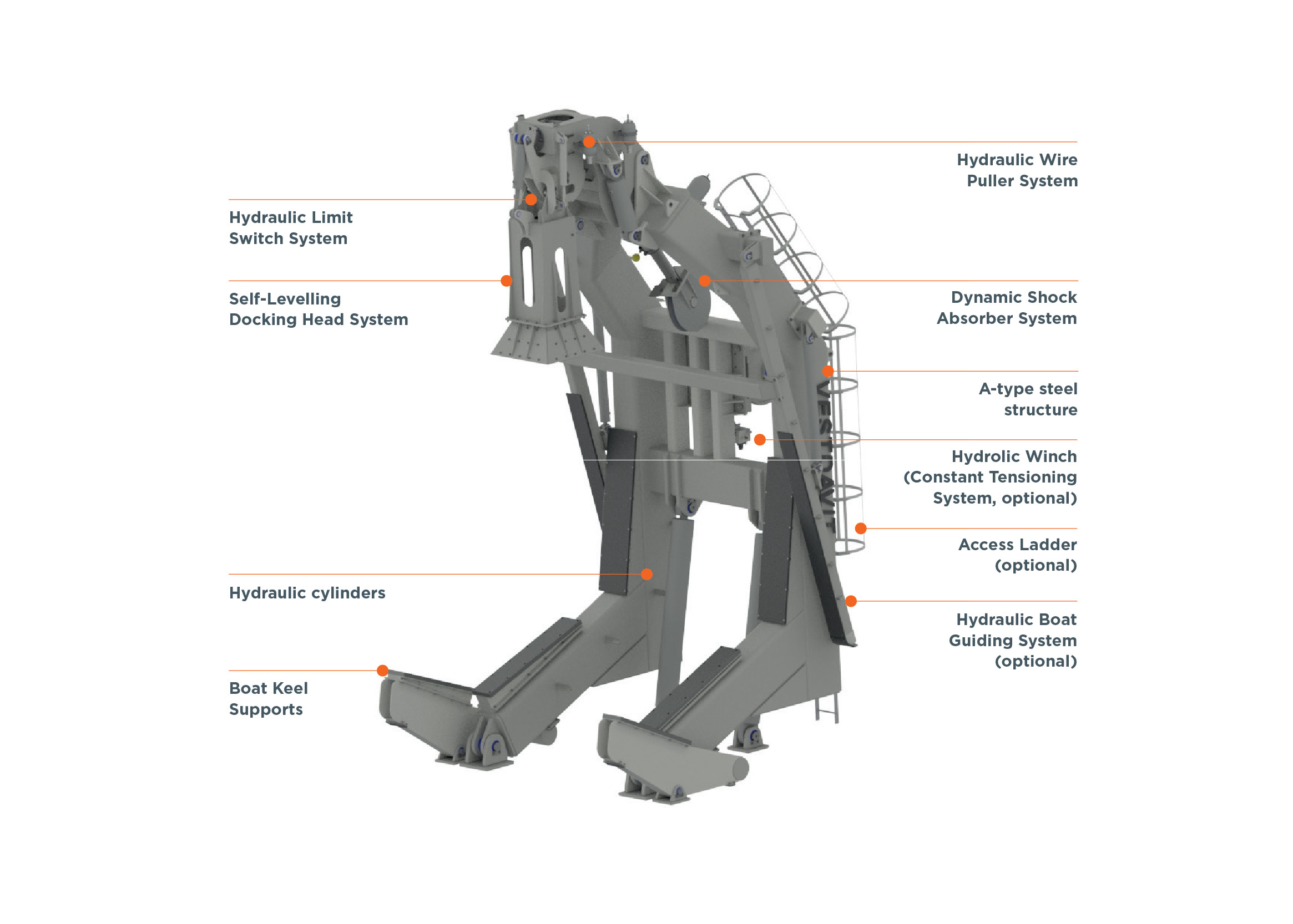 using a single lifting point. These davits are widely used in the naval, offshore, commercial, search and rescue industries, offering reliable and safe deployment solutions even in challenging conditions.