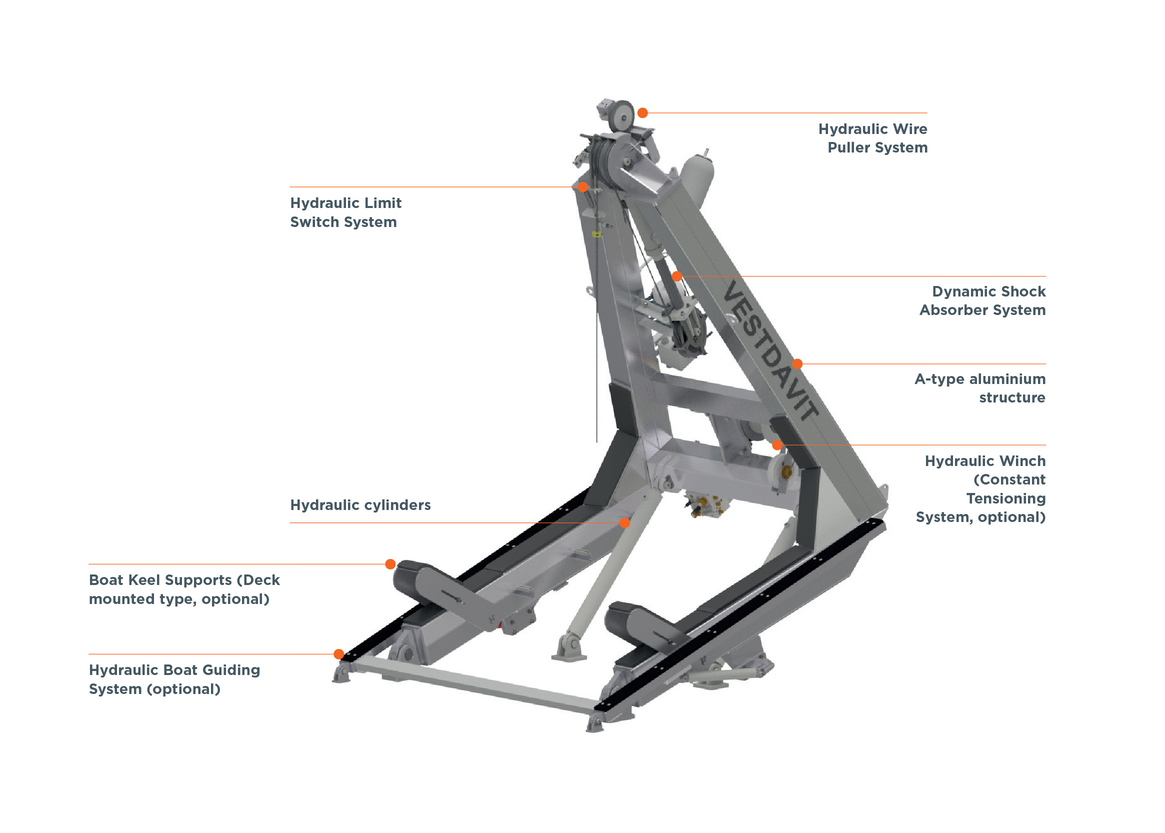 using a single lifting point. These davits are widely used in the naval, offshore, commercial, search and rescue industries, offering reliable and safe deployment solutions even in challenging conditions.