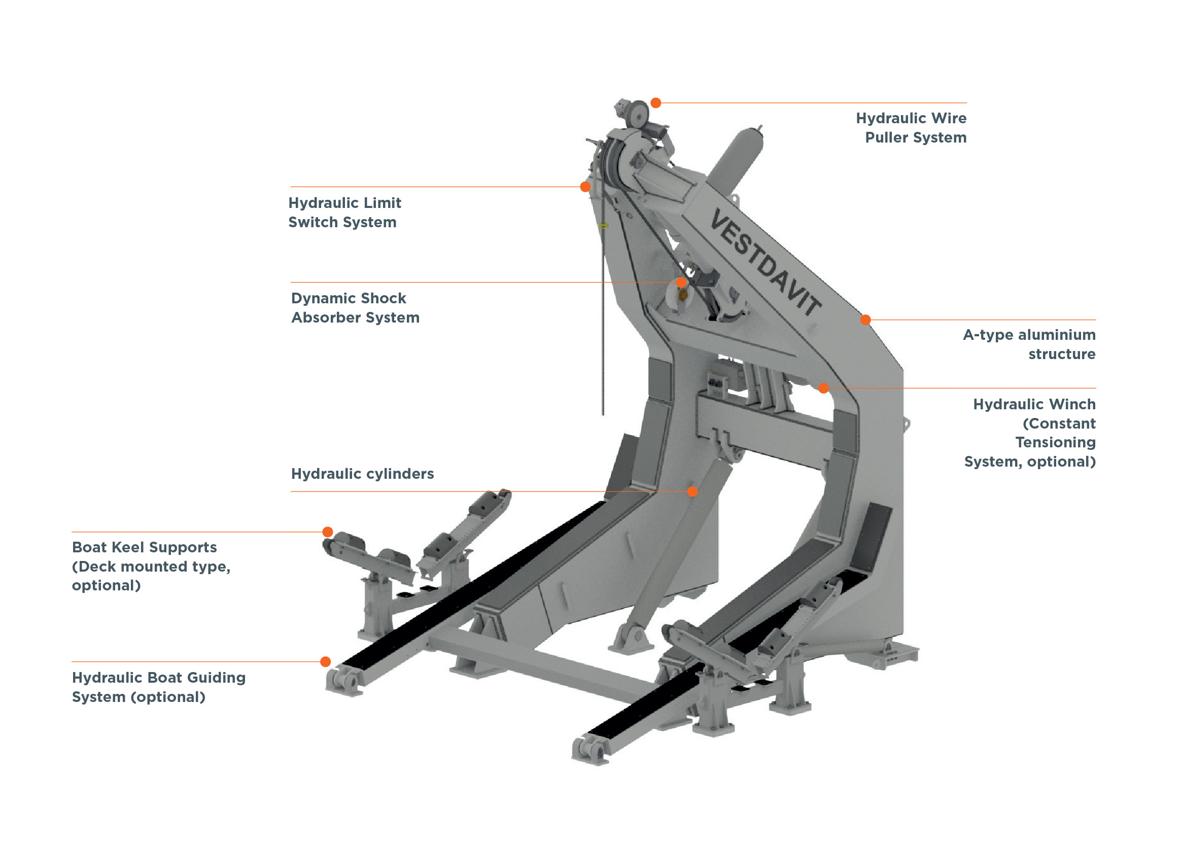 using a single lifting point. These davits are widely used in the naval, offshore, commercial, search and rescue industries, offering reliable and safe deployment solutions even in challenging conditions.